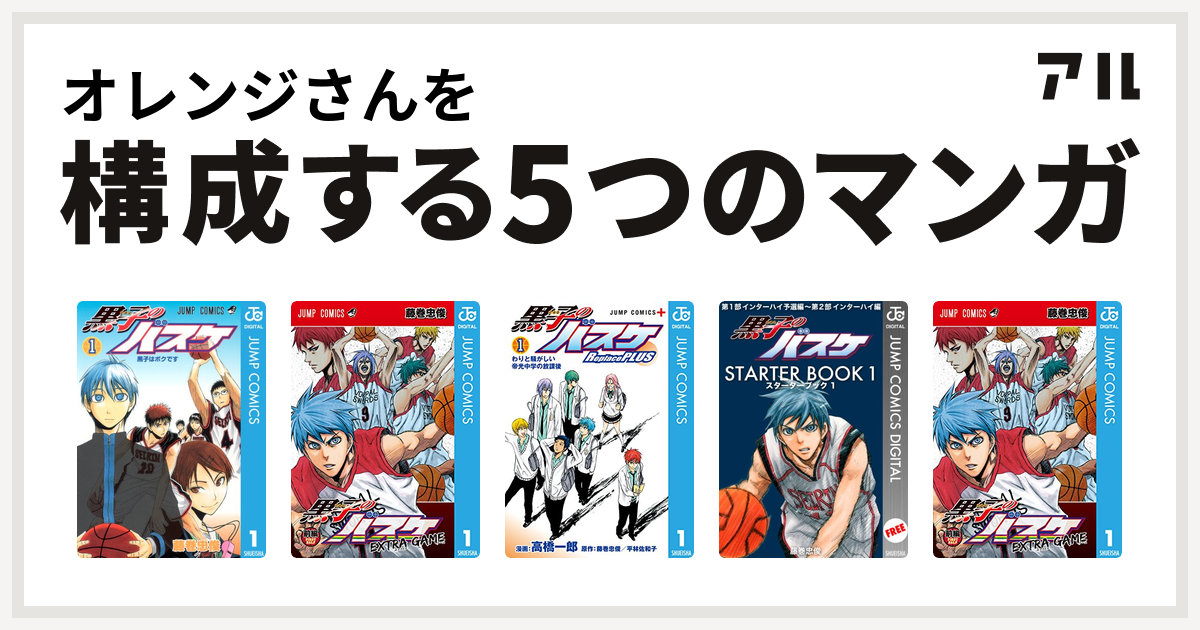 オレンジさんを構成するマンガは黒子のバスケ 黒子のバスケ Extra Game 黒子のバスケ Replace Plus 黒子のバスケ Starter Book 黒子のバスケ Extra Game 私を構成する5つのマンガ アル